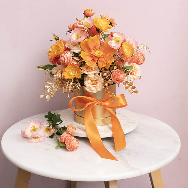The gold lid for this piece can sit underneath -- perfect for floral arrangements or hampers.