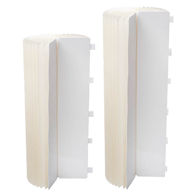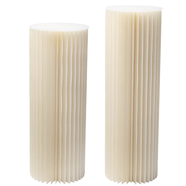 Measuring 30cm in diameter, with heights of 80cm and 100cm, these plinths are sold in a set of two.