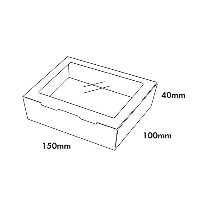 Comes pre-folded for immediate use. This box is tapered with a base measurement of 13.5cm and top measurement of 15.5cm. Depth is 8.5cm and height is 3.8cm. The clear window is made from PE and is 8.5cm wide and 5cm deep.