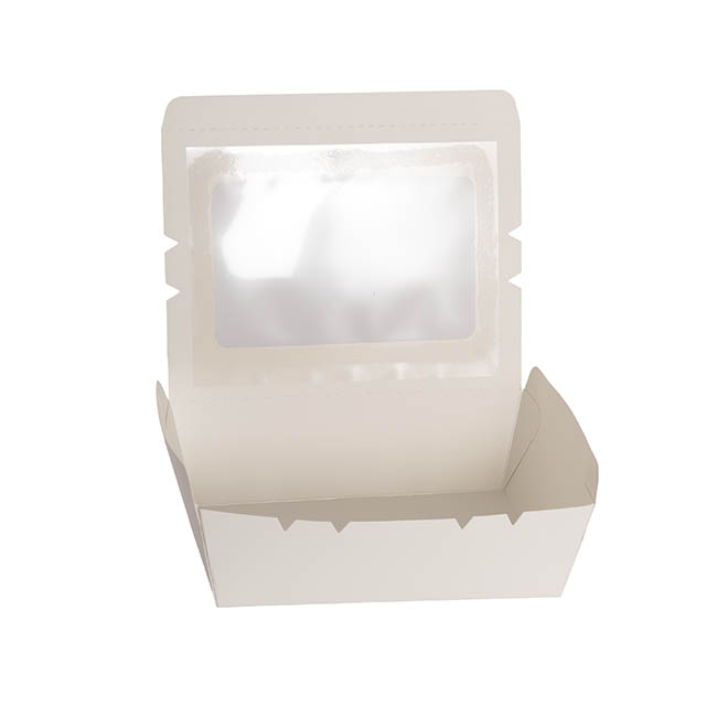 Comes pre-folded for immediate use. This box is tapered with a base measurement of 19.5cm and top measurement of 22.5cm. Depth is 14cm and height is 6.5cm. The clear window is made from PE and is 16cm wide and 10cm deep.
