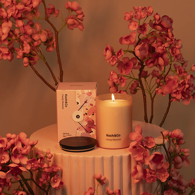 This Scented Soy Candle with Cherry Blossom fragrance is infused with a subtle floral aroma. Sweet and slightly musky, this fragrance has been carefully formulated by top international brands. Boosted with enhanced fragrance performance, this natural soy wax, single-wick candle makes a perfect gift or addition to home decor.