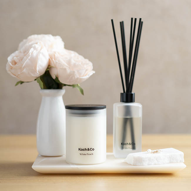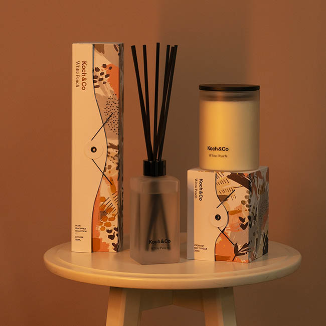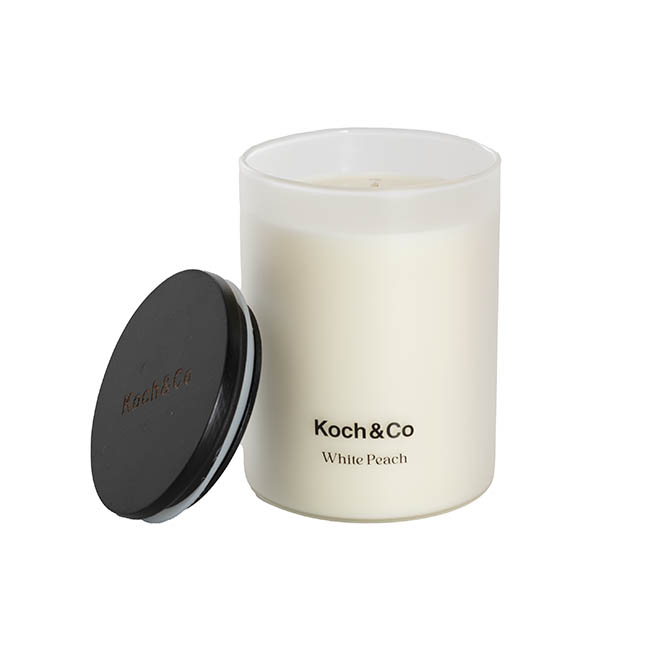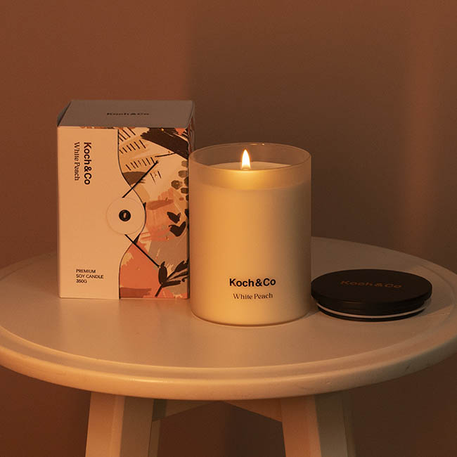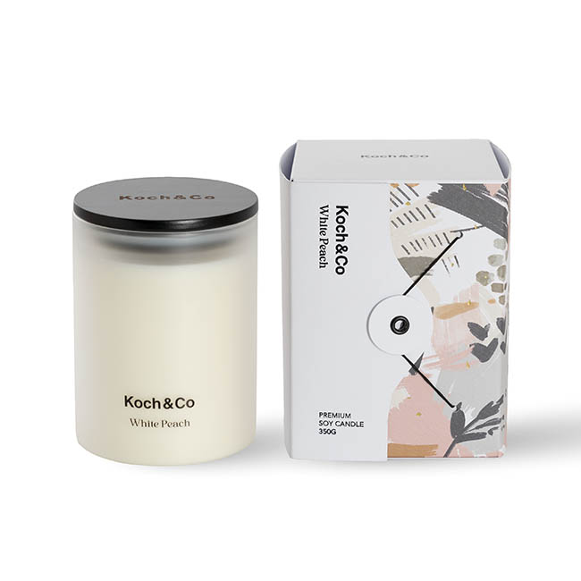 This Scented Soy Candle with White Peach fragrance is infused with a juicy aroma. Fruity and fresh, this fragrance has been carefully formulated by top international brands. Boosted with enhanced fragrance performance, this natural soy wax, single-wick candle makes a perfect gift or addition to home decor.