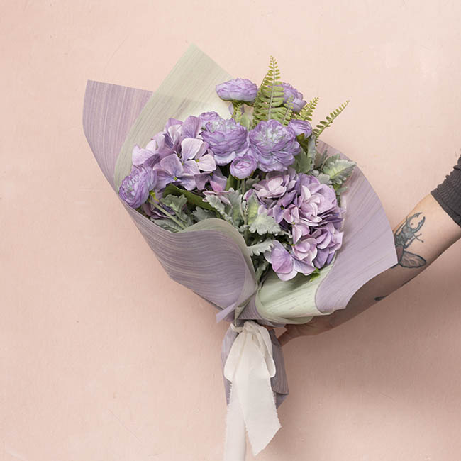 This flower wrap measures 50-micron in thickness and is waterproof. Each sheet size measures 50cm by 70cm. This wrap is available as a pack of 100 sheets.