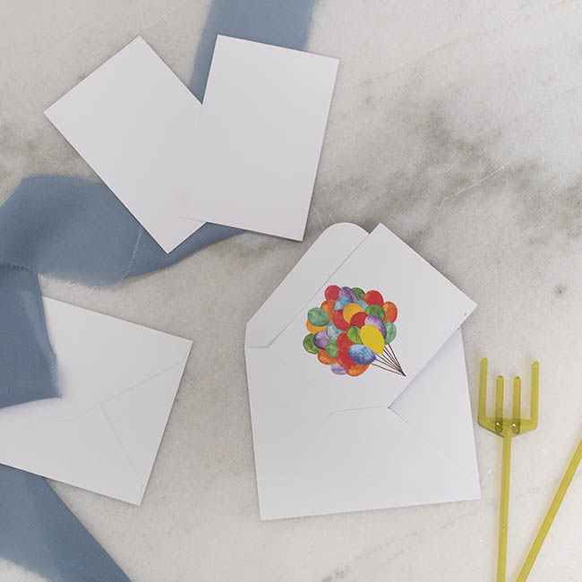 Make every floral arrangement, gift or hamper extra special with our beautifully crafted Folded Balloon Bunch Gift Cards and Envelopes. This top folding card features a colourful print of a bunch of inflated balloons. These cards offer a perfect finishing touch to any floral arrangement, hamper and present, offering a personal space on the inside for you to convey heartfelt messages or well wishes. The elegant fold-over design provides a premium feel and added privacy for your notes.