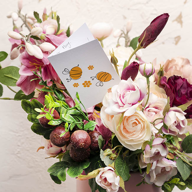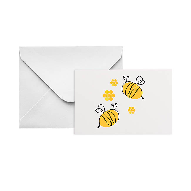 Make every floral arrangement, gift or hamper extra special with our beautifully crafted Folded Bees and Honeycomb Gift Cards and Envelopes. This top folding card features a print of hand-drawn abstract bees with some honeycomb. These cards offer a perfect finishing touch to any floral arrangement, hamper and present, offering a personal space on the inside for you to convey heartfelt messages or well wishes. The elegant fold-over design provides a premium feel and added privacy for your notes.