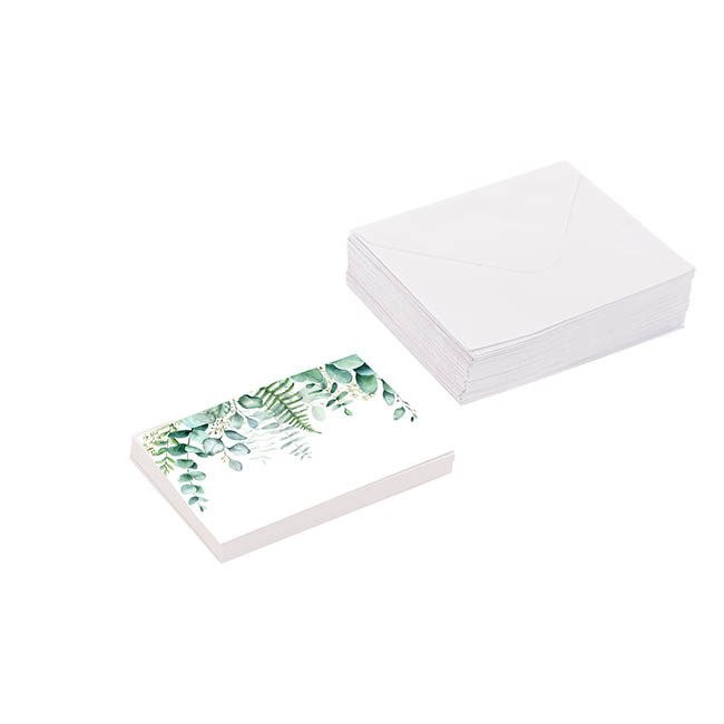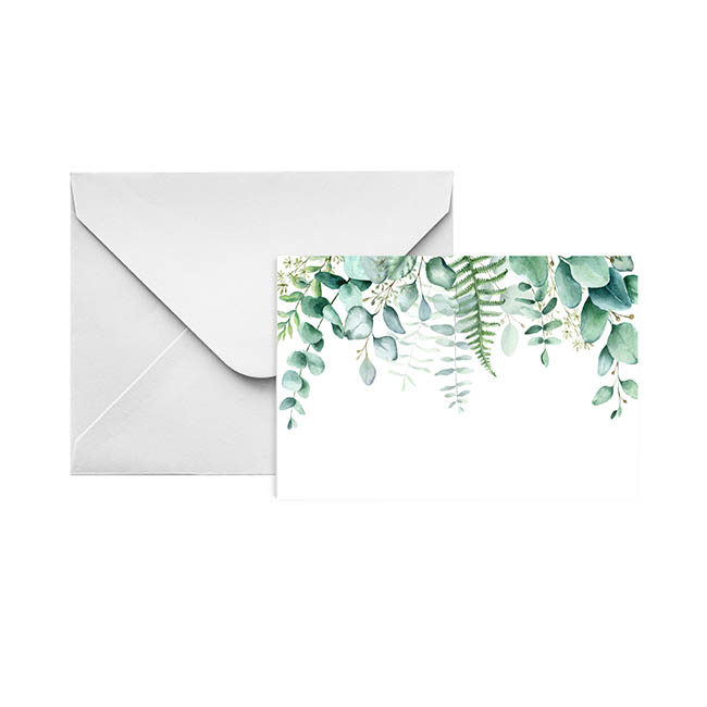 This top folding card has a top border of Eucalyptus leaves on the front creating a striking gift card.