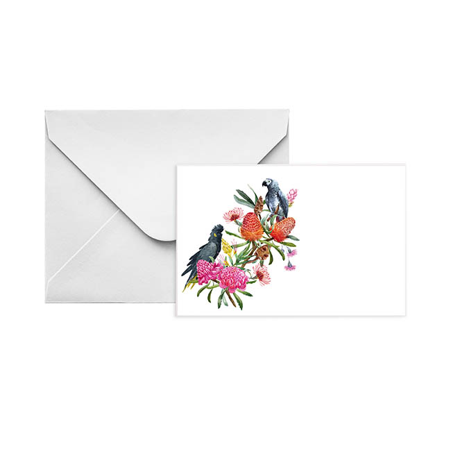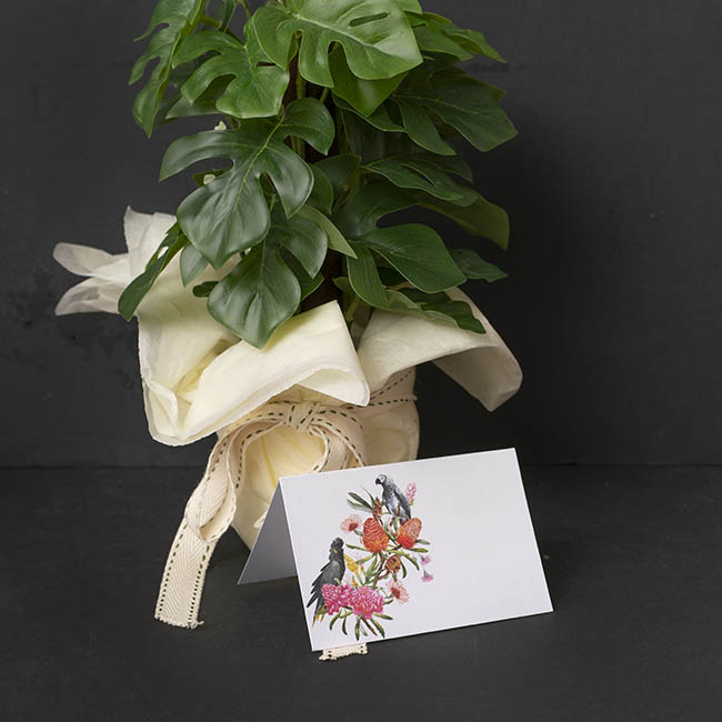 Make every floral arrangement, gift or hamper extra special with our beautifully crafted Folded Native Birds Gift Cards and Envelopes. This top folding card features a print of natiive birds and flowers. These cards offer a perfect finishing touch to any floral arrangement, hamper and present, offering a personal space on the inside for you to convey heartfelt messages or well wishes. The elegant fold-over design provides a premium feel and added privacy for your notes.