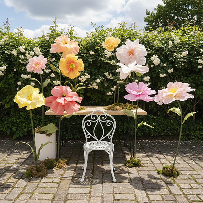 This delicate giant pink anemone flower stem adds a soft, elegant statement to any indoor display. Standing 120cm tall with a 45cm crepe-paper flower head, the petals, leaves, and stem are reinforced with underwire, allowing you to gently shape and style the flower to your preference. Beautiful yet fragile, it must be handled with care, as it is very delicate, not waterproof, and not suitable for outdoor use. Please note, this anemone stem does not come with a base.