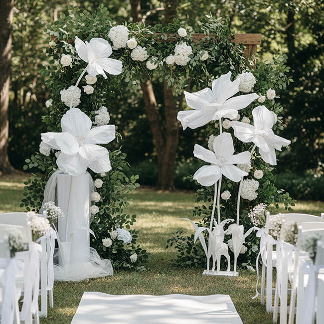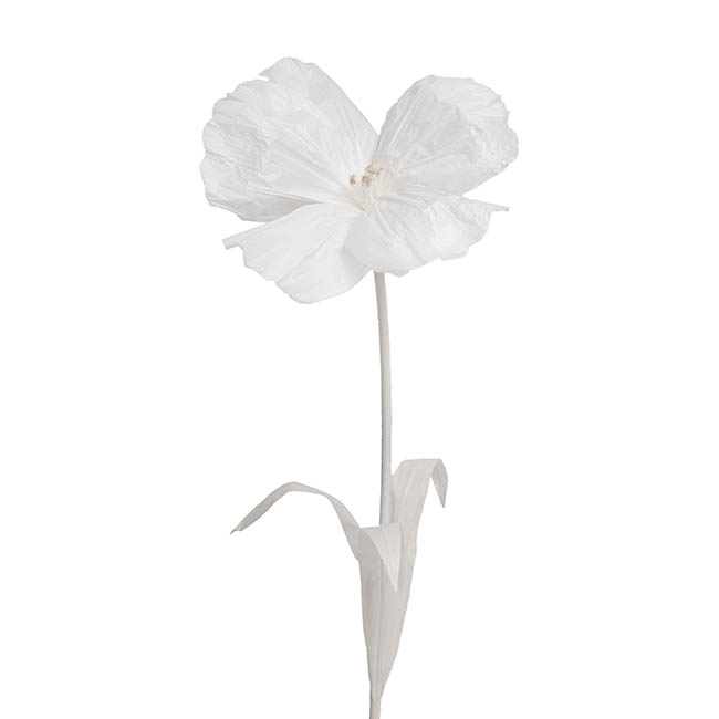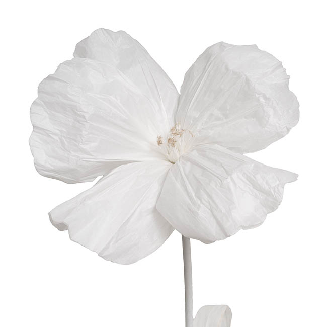 This giant white paper cosmos stem features an impressive 40cm flower head atop a 95cm stem, creating a striking statement for events and displays. Designed with underwire throughout the petals, leaves, and stem, it allows effortless shaping to achieve your desired look. While it can be used outdoors with care, it is not waterproof and should be protected from severe weather conditions, especially heavy winds, to ensure longevity.