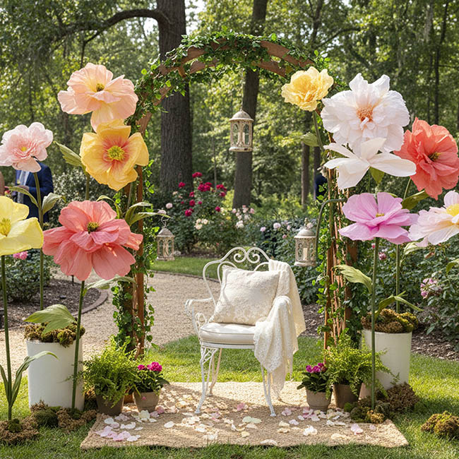 This stunning giant peach pillar rose stem adds a vibrant, elegant touch to any indoor display. Measuring 120cm tall with a 40cm tissue-paper flower head, the petals, leaves, and stem feature underwire, allowing you to gently shape and style the rose to your desired look. Delicate and eye-catching, it must be handled with care, as it is very fragile, not waterproof, and not suitable for outdoor use. Please note, this rose stem does not come with a base.