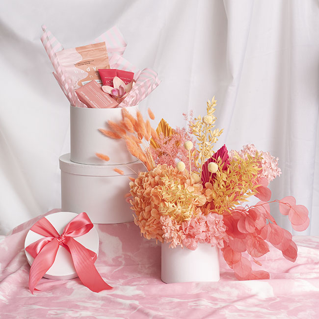 Gift Flower Box Round Blush Pink Set 5 (21x21cmH)