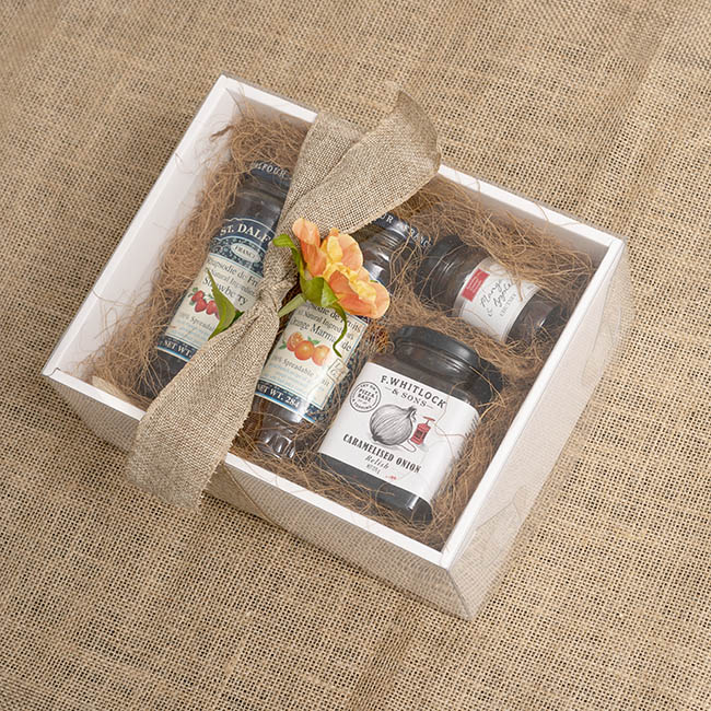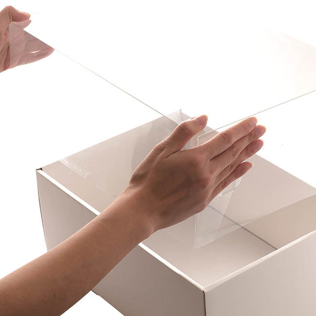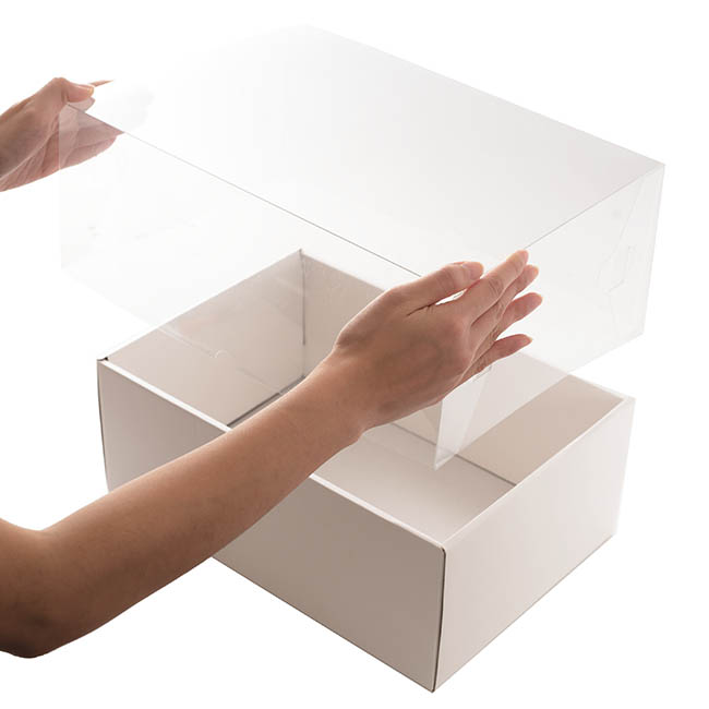 This item is flat packed and easily assembled. The transparent PVC lid showcases the contents of the box, ideal for displaying gifts or hampers that are visually striking or marketing-related.