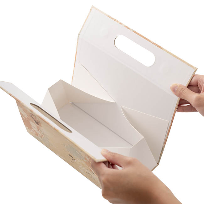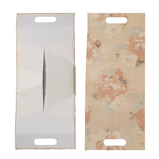 This Handbag-style Magnetic Hamper flatpack gift bag in Blush offers a unique and premium packaging solution for your next gift or mini hamper. This pattern features a beautiful large floral print with gold flecks and a wallpaper-texured style finish.