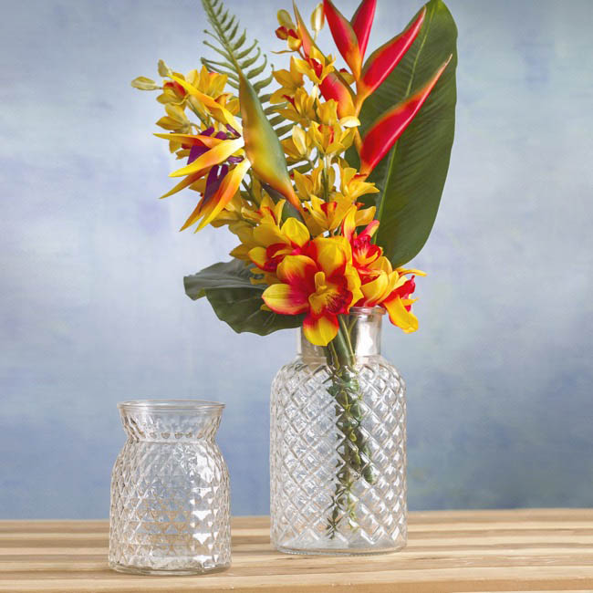 With a cut-crystal textured finish, the Ann promo vintage vase has a 10cm opening. Dimension of bottle neck is 7.5cmD inside. With a concave lip, it is ideal for flower arrangements. Simply add the desired style of flowers to a high quality and cost effective small vase. Available in two sizes.