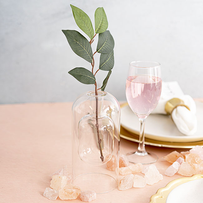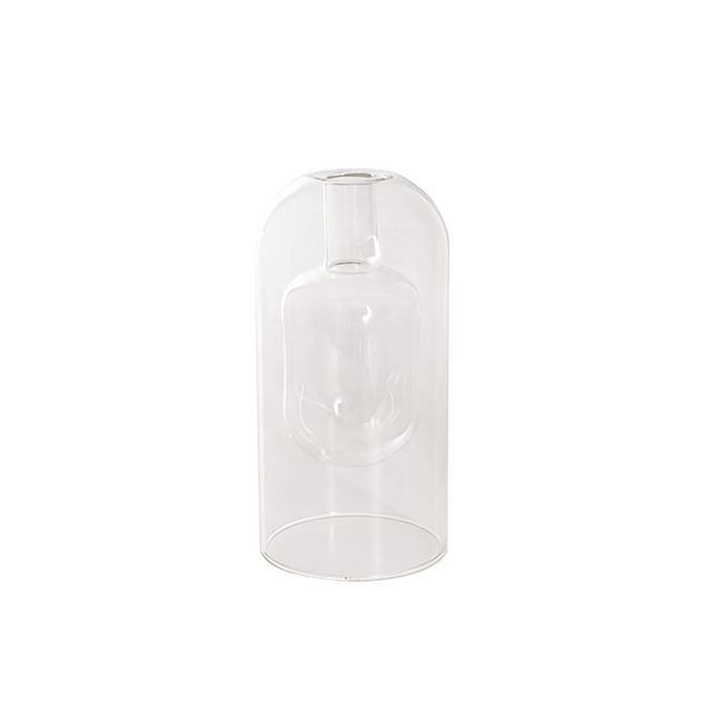 With a quirky retro design, this vase has a suspended internal bud vase and an attached overlaying cloche design, creating the effect that the bud vase is floating.