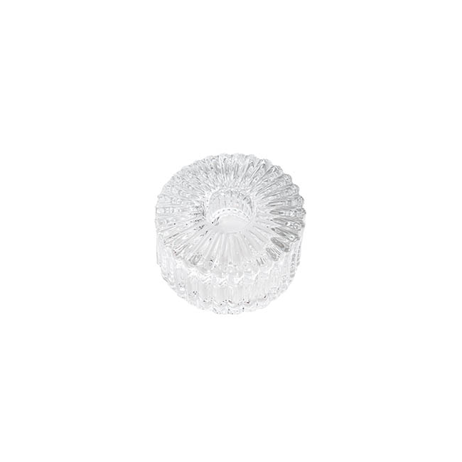 It measures 8cm in diameter and 4.5cm high. Internal measurements for tealight side, approximately 5.5cmD x 2cmH. Internal measurements for taper candle side, approximately 2.5cmD x 2cmH.