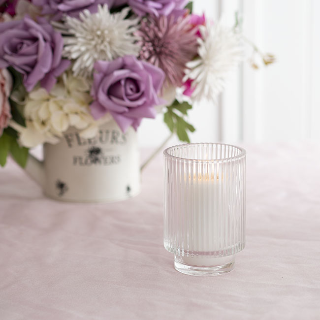 This piece measures 8.8cm in diameter and 13cm high. It can accomodate any of our tealight candles, votive candles 51090012 and 51090013 and pillar candles measuring up to 5cmD and up to 10cmH. It can hold up to 441ml. Please note: These are sold as single items and not as sets of four.