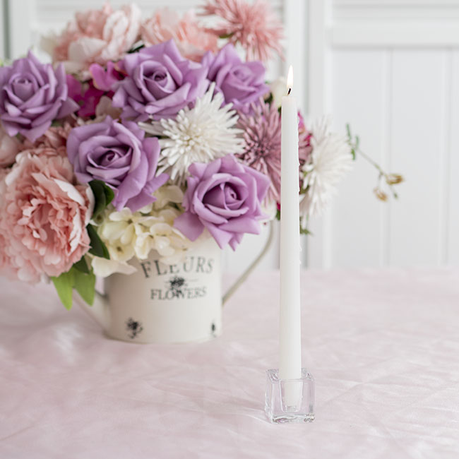 This candle holder measures 4cm wide, deep, and tall. It is sold individually.