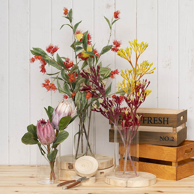 This vase measures 12cm in diameter and 30cm tall. Each piece is individually packaged in a reusable box and is available for individual sale.