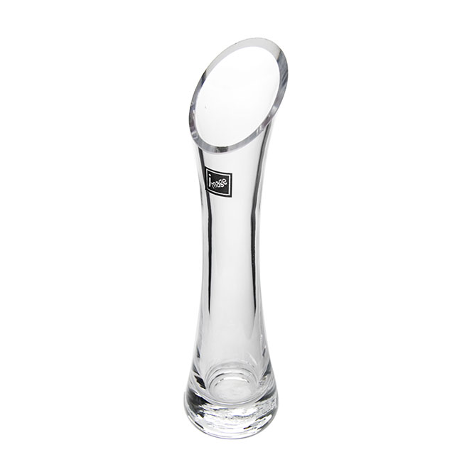 Slender bud vase features a modern diagonal cut. Pair with a single trailing flower for a simple and elegant finish. Three sizes available.