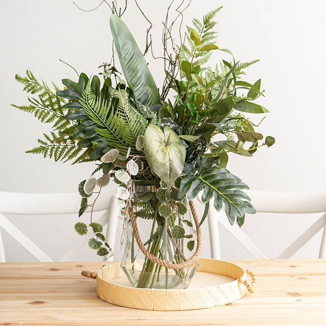 This vase can be easily converted into a hanging decoration using the thick jute rope handle. Safety notice: we do not recommend that candles with a live flame be used when hanging the vase, as this can cause damage to the rope, leading to potential breakage and injury.