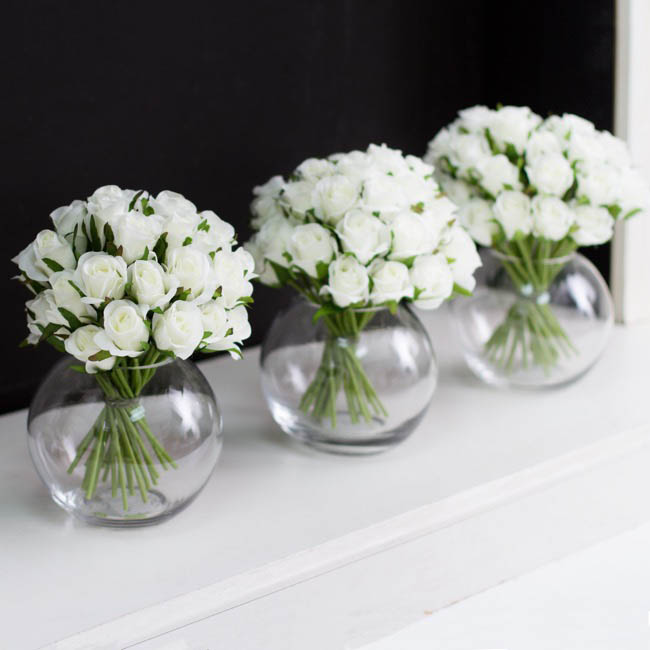 This is a popular sized glass fish bowl that is well suited for small wedding table arrangements, floral centre pieces, terrariums and can be used as a candle-holder. Top opening is 9.5cmD, widest measurement 15cmD, height 12cm. This fish bowl may be too small to be filled with water and used as a fish bowl. The holding volume of the bowl is 1.8L. Please note, as this is a handmade product, diameter of opening may vary.