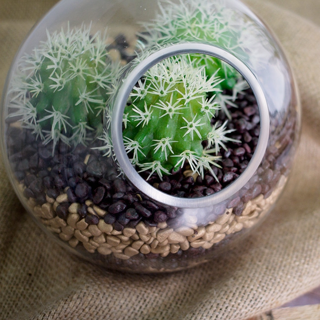 Fish bowl features a small side opening that's 7.5cm in diameter and is available in a larger size. Use as terrariums with succulents or float submersible candles and flowers. Top diameter is 9.5cm and bottom diameter is 20cm. NOT Suitable to be filled with water and used as a fish bowl. Please note, as this is a handmade product, diameter of opening may vary.