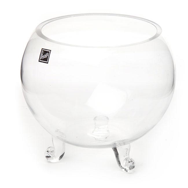 Our large footed fish bowl has many uses such as terrariums, wedding table decoration and even as a candle holder. Top opening 14cmD, middle measurement 17cmD, Height including feet 17cmH. Suitable to be filled with water and used as a fish bowl. Please note, as this is a handmade product, diameter of opening may vary.