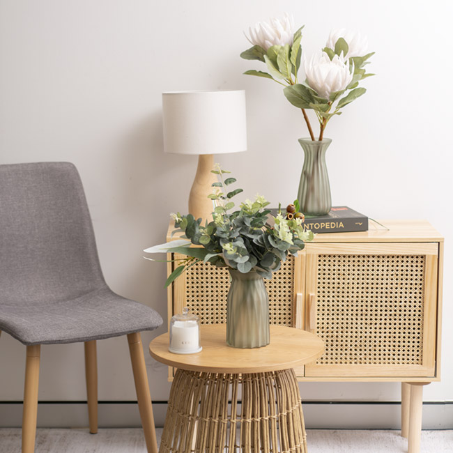 The top of the vase has a 11cm opening, 11.5cm diameter and stands 20cm tall. The narrow neck measures at 6.5cm in diameter.