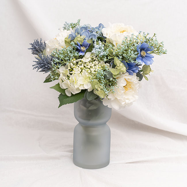 The top of the vase has a 11cm opening, 11.5cm diameter and stands 20cm tall. The narrow neck measures at 6.5cm in diameter.