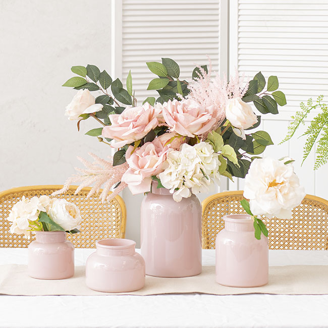 Glass Milk Bottle Solid Glossy Pink (6cmDx15.5cmH)