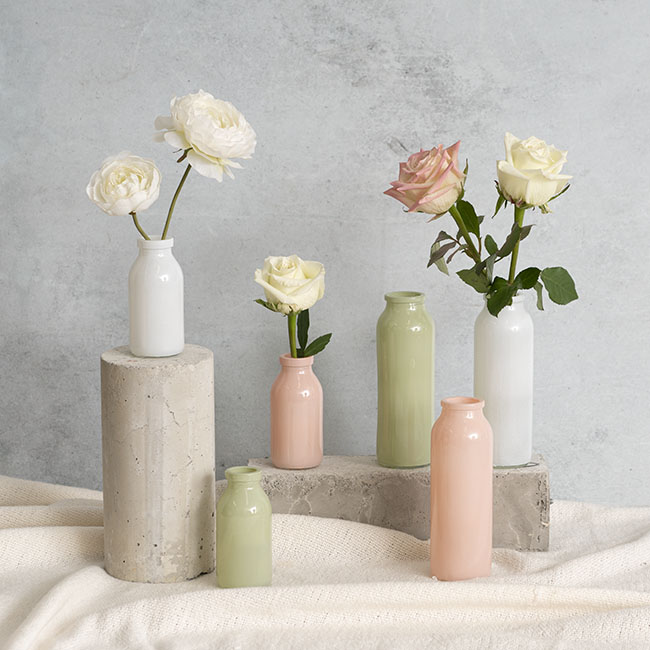As a glass vase that has opaque colour, this product works well as a bridging vase that can better marry a cluster of transparent glass and opaque ceramic vases.