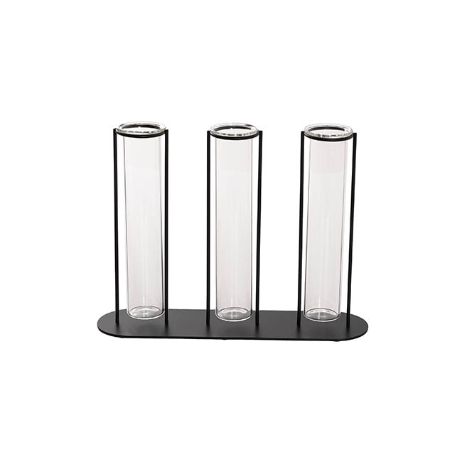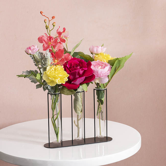 Crafted with precision, the sturdy metal frame provides a stable and elegant structure, while the clear glass tubes create a stunning visual contrast. The open design allows for easy access, making it simple to change water or swap out flowers as needed. Whether placed on a tabletop, shelf, windowsill, or as a low-lying centrepiece on a dinner table, this piece effortlessly blends into contemporary, industrial, or minimalistic interiors.