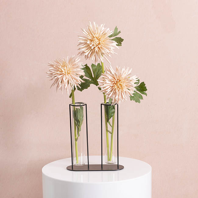 Crafted with precision, the sturdy metal frame provides a stable and elegant structure, while the clear glass tubes create a stunning visual contrast. The open design allows for easy access, making it simple to change water or swap out flowers as needed. Whether placed on a tabletop, shelf, windowsill, or as a low-lying centrepiece on a dinner table, this piece effortlessly blends into contemporary, industrial, or minimalistic interiors.