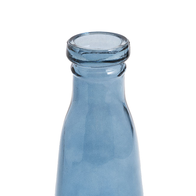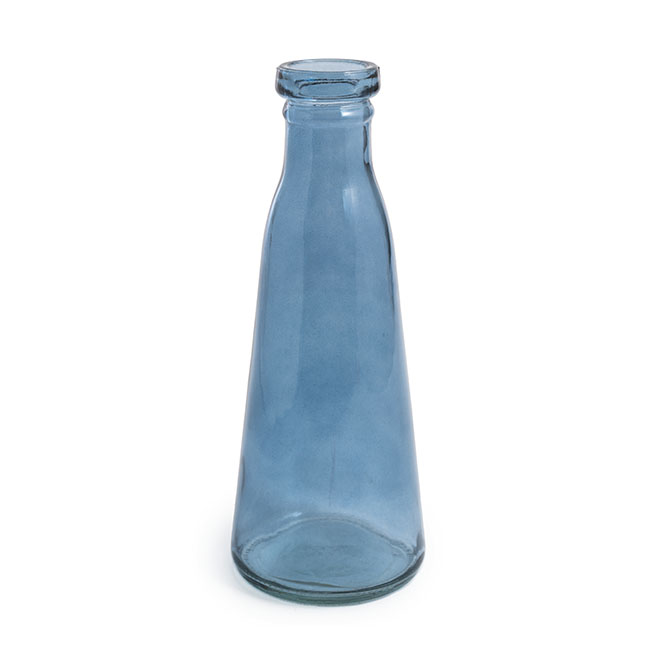 The Blue Evelyn vintage bottle bud vase is 22.5cm in height and is ideal for small to medium sized arrangements. Group a small collection of similar vintage bottles together as an effortlessly chic display for your table top decor. Fluid capacity is approximately 500mL.
