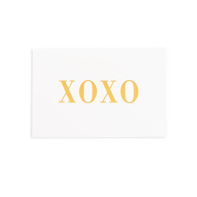A single-sided non foldable card in white that features a XOXO (Kiss Hug) message in luxe gold foil.