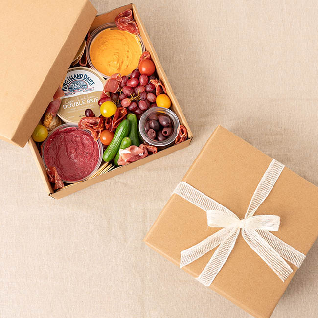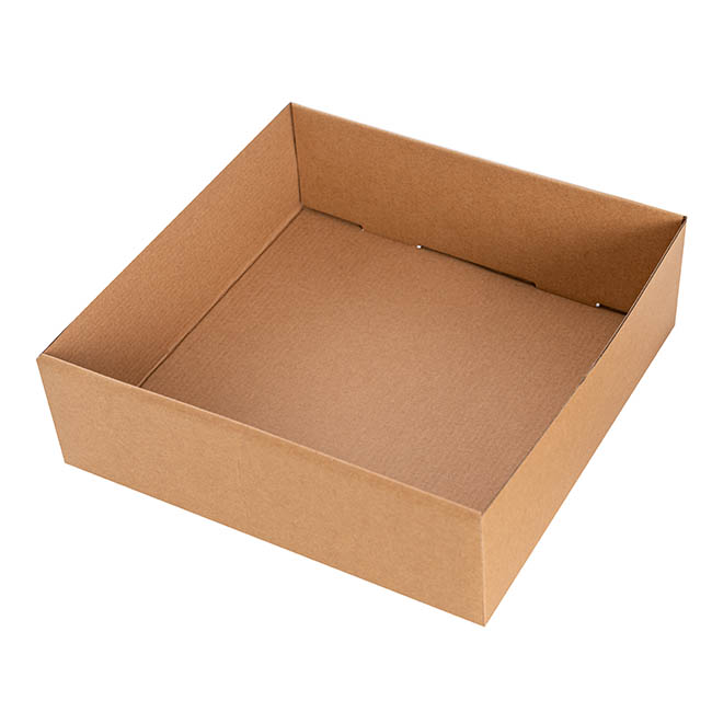 Large Kraft square box can be used for patisseries or fruit gifts, or as a grazing box. Can also be used for presents as a gift box. If using with food, you can add aluminium foil under food grade tissue paper to prevent any oily residue coming through from deli meats. Comes flat-packed and is easy to assemble.