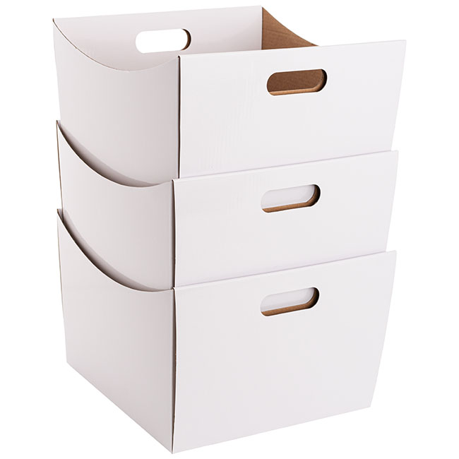 This product comes flat-packed, is easy to assemble, and is available in a pack of 5. Each hamper tray measures 22.5cm wide and 22.5cm in length and 17cm in height. This product can bear up to 6kg in weight.
