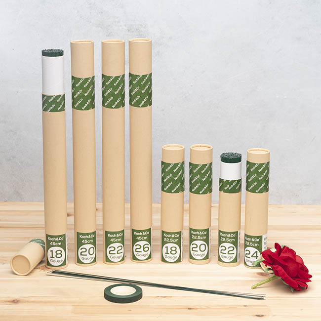 Our 26 gauge wire (0.4mm) is one of the thinnest wires available at a pre-cut length of 18: (45cm). This wire suits intricate works including weaving and crochet of wires. Tools with very fine tips should be used with this wire. Each green wire blends in well with amongst most foliage and stems. Packed in a square 4.4lb (2kg) box for easy storage. The box contains approximately 4347 wires.