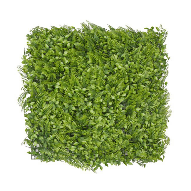 Thick and dense our artificial fern leaves wall comes in a 50x50cm square mat. The plastic net backing and tabs makes easy attachment to your surface when creating greenery backdrops. The mat needs to be securely fixed to the walls when using vertically. Can be used outside under cover, not for long term exposure to weather elements, sun may cause colour to fade.