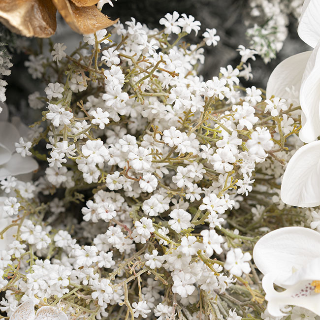 Gypsophilia, popularly known as the babys breath flower, is a bushy plant with branching habit bearing dainty small flowers on a slender stem. Baby's Breath is a tender and delicate annual. Gypsophilia is a popular flower to accent bouquets, corsages and flower vases, especially as dried flower., besides being a popular flower in the home garden as well.