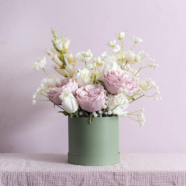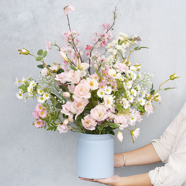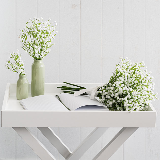 This spray measures 66cm tall. The stem measures 45cm tall and the flowers measure 20cm wide.