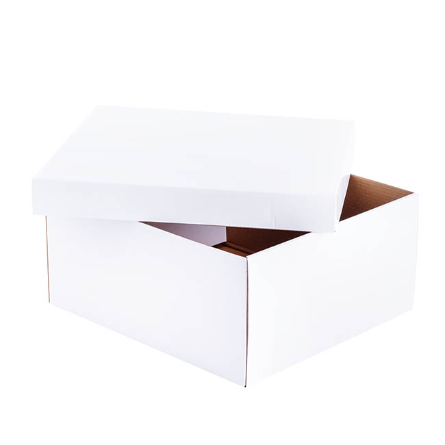 Large white matte cardboard hamper box is great for gifts or presentation. It arrives flat packed for simple storage and is easy to assemble.