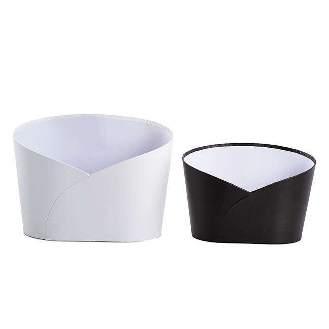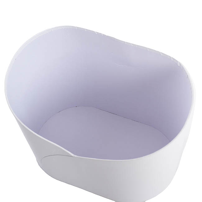 Such an elegant way to present your gift hamper with this large white oval shape bucket. It has a low front, perfect to display and showcase what's inside. Made from rigid matte cardboard and measuring 32cm wide, 22cm in depth, 23.5cm in height and 13cm in height in the front middle point.