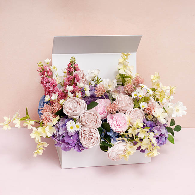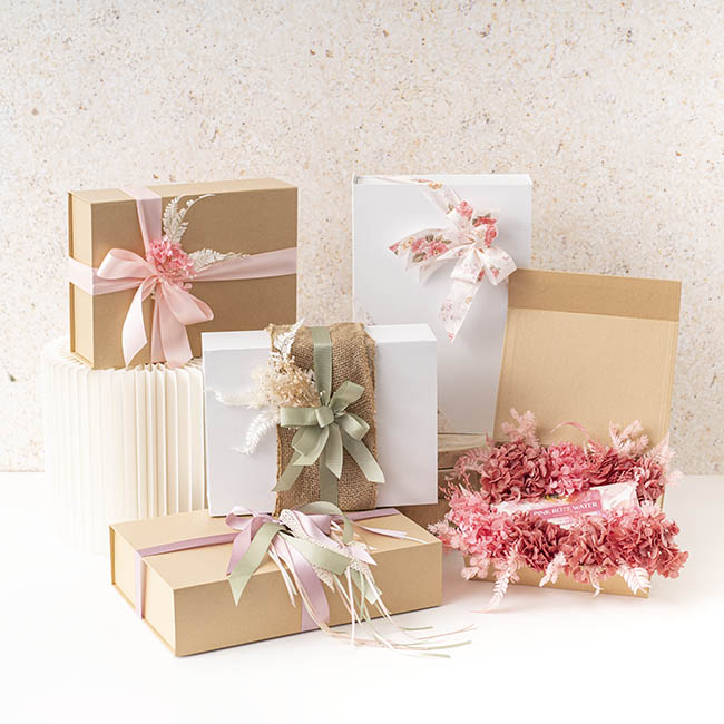 This Large Hamper Gift Box with Magnetic closure Flap in White is a robust and premium-looking Hamper Box that neatly contains your hamper gift contents. Easy to assemble and ship, these sturdy Hamper boxes can be used for Christmas or holiday hampers, birthday presents, baby shower gifts, bridesmaid/groomsmen gifts, and more.