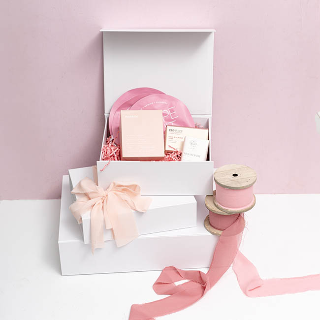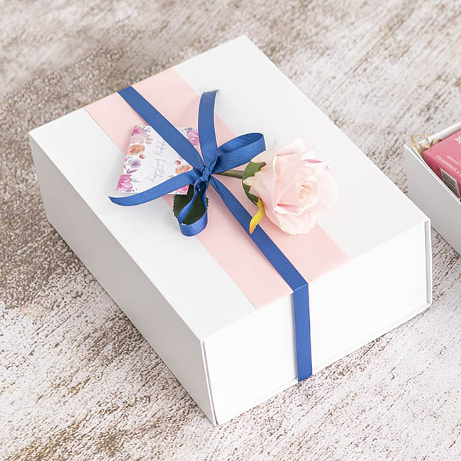 This Medium, Tall Hamper Gift Box with Magnetic closure Flap in White is a robust and premium-looking Hamper Box that neatly contains your hamper gift contents. Easy to assemble and ship, these sturdy Hamper boxes can be used for Christmas or holiday hampers, birthday presents, baby shower gifts, bridesmaid/groomsmen gifts, and more.