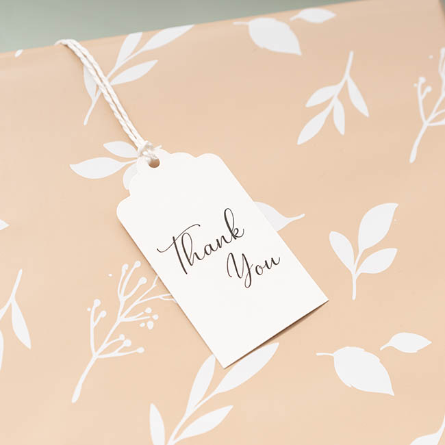 These white Hanging Gift Tags feature a scalloped top edge and 'Thank You' print in black. Use these tags as a perfect addition to small, medium or large flower bouquets, gifts, sweet treats, thank you gifts, or hampers. The printed message is on the front, leaving room on the back for a short message.