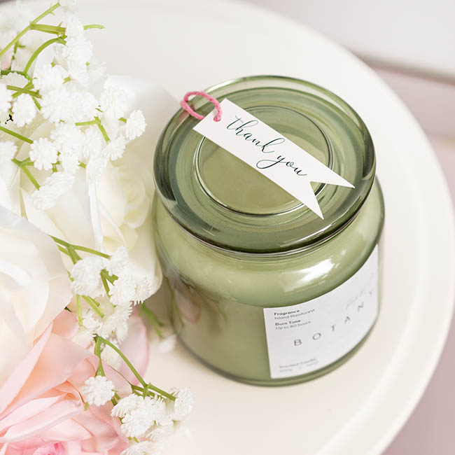 These white flag-shaped Hanging Gift Tags feature a 'Thank You' print in black. Use these tags as a perfect addition to small flower bouquets, gifts, thank you gifts, sweet treats or mini hampers. The printed message is on the front, leaving room on the back for a short message.