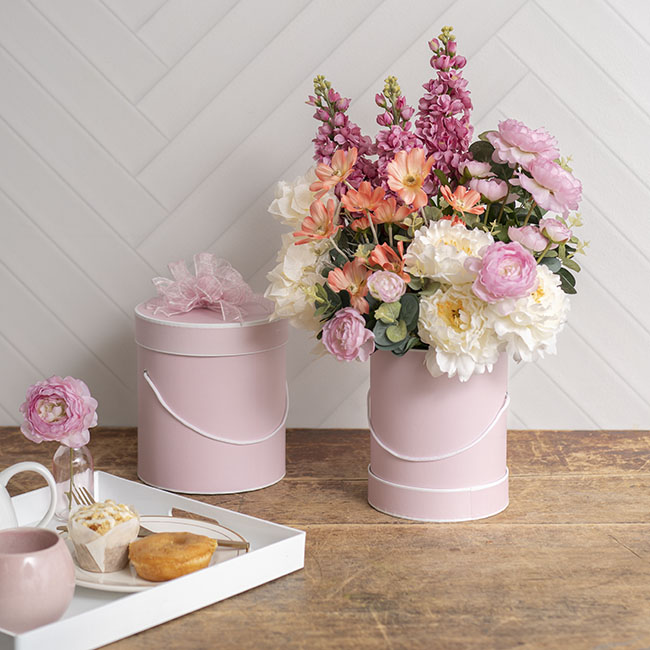 Our rigid flower boxes can be used for all occasions. An alternative to wrapped flower bouquets the flower boxes make a great presentation and can be transported securely. Includes a thick white rope for handles. Sold as a set, not separately. The two boxes have different sizes. The boxes' dimensions are 17.5Dx21H & 20Dx22cmH and include the lid. The Koch insert BCHBS2 can be used with each box.