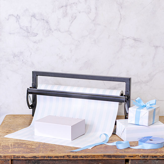 Has a sturdy metal frame with a superior cutting blade for easy cutting of kraft paper and counter rolls. The dispenser is ideal for wrapping parcels, boxes and gifts. Components are not water-resistant.